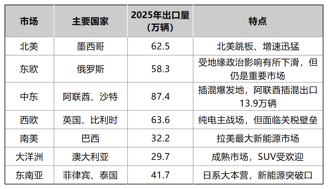 出口市场结构发生显著变化,从依赖单一市场转向多元化布局,中东、中南美和欧洲市场份额明显提升。