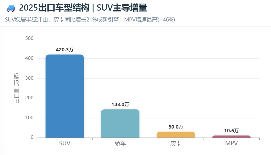中国全年出口量达832万辆,同比增长30%,增速较2024年大幅提升;其中新能源汽车出口343万辆,同比激增70%,远超2024年16%的增速水平。