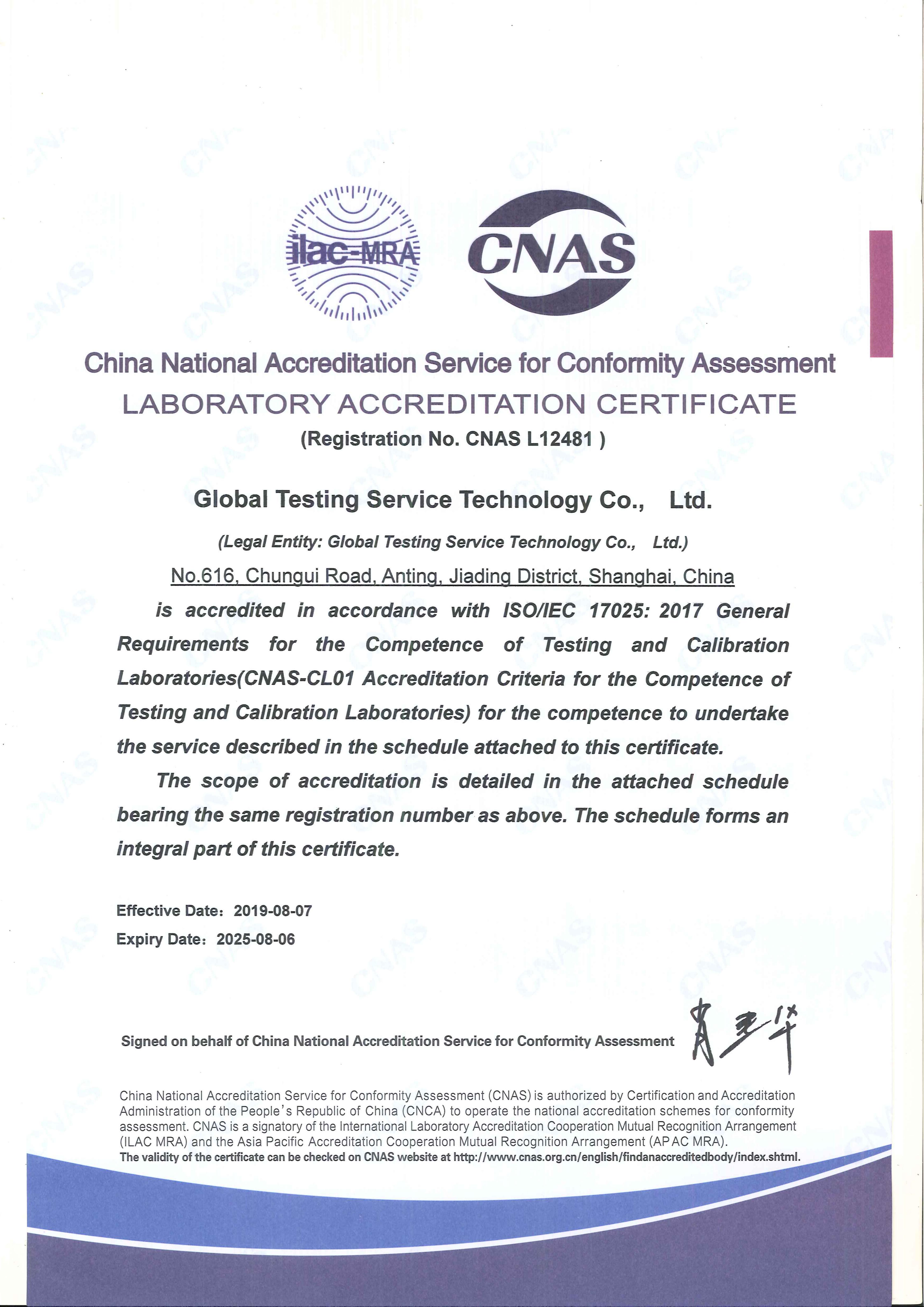 ◆With a laboratory area exceeding 10,000㎡ and compliance with ISO 17025, our facilities are accredited by China's CMA and CNAS, as well as the U.S. A2LA and IAS