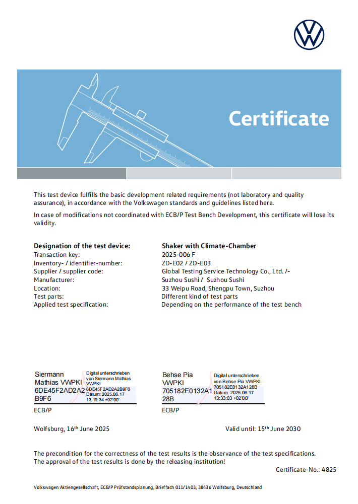 瑞典交通部 E5、捷克交通部 E8、爱尔兰交通部 E24认可,满足 ISO17020,ISO17025 要求,签署欧盟WVTA证书。