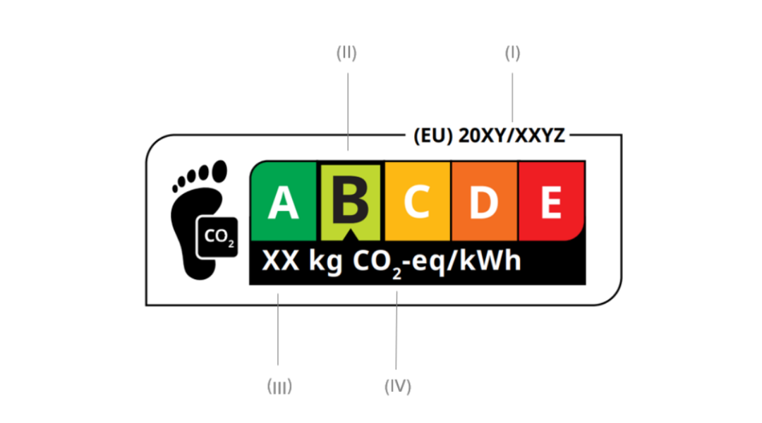依据法规要求,碳足迹标签主要包括信息:依据(EU)2023/1542及其相关确立的相关电池类别的碳足迹性能等级、两位有效数字形式表述的已确定生命周期碳足迹、电池在其预期使用寿命内所提供的总能量每千瓦时的二氧化碳当量,应缩写为“kg CO2-eq/kWh。