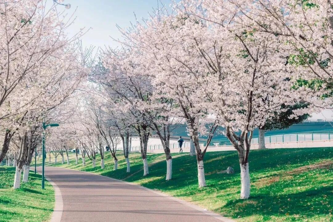 全程串联城市地标与春日盛景,一边是波澜壮阔的钱塘江景,江风习习、视野开阔;一边是绵延 7.4 公里的粉色花海,3000 余株樱花竞相绽放,花瓣随风轻舞,漫步其间如入梦幻仙境